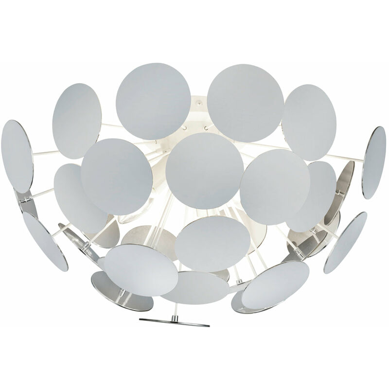 Plafoniera Plafoniera da Interno E14 in Metallo Bianco Opaco Discalgo Plafoniera Sfera Tondi Metallo Bianco Opaco + Argento D. 54Cm Caratteristiche Tecniche Stile Giovane Fonte di luce principale: Lampadina (non Inclusa) Attacco E14 Materiale: Metallo Colore Finitura: Bianco Opaco Potenza (W): 4 Lumen: 470 Kelvin: 3000K Alimentazione (V): 230 Durata Nominale (h): 10000 Numero Accensioni: 10000 Classe energetica: E Altezza (cm): 30 Diametro (cm): 54 Peso netto (kg): 1,595