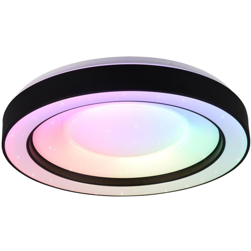 Plafoniera Plafoniera da Interno a led in Plastica Nero Opaco Arco Plafoniera Led Diffusore Bianco Effetto Stelle Con Bordo Cromo Rgb E Telecomando Multifunzione D.41Cm Caratteristiche Tecniche Stile Moderno Fonte di luce principale: Inclusa a LED Materiale: Plastica Colore Finitura: Nero Opaco Potenza (W): 22 Lumen: 2500 Kelvin: 2700 - 6000K Alimentazione (V): 230 Durata Nominale (h): 25000 Numero Accensioni: 10000 Classe energetica: A