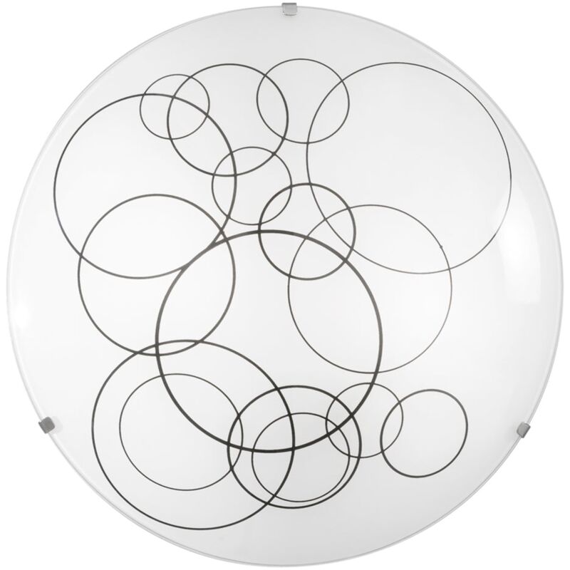 Collezione realizzata in vetro bianco lucido con decoro a cerchi neri e ganci cromo. Colore: Bianco Materiale: Vetro Tipo sorgente o lampadina richiesta: E27 Grado di protezione da corpi solidi e acqua: IP20 (solo uso interno) Dimensioni: 30x30x5 cm. Il brand Luce Ambiente e Design pone l'accento su tendenze, design italiano e qualità dei materiali. Tutto ciò che serve per illuminare e allo stesso tempo arredare i tuoi ambienti domestici. Vasta selezione di illuminazione da soffitto, parete o superifice. Lasciati affascinare dalle linee sinuose, accostamenti audaci e un tocco di tecnologia che non guasta mai. La Gruppo FT si impegna nella ricerca dei migliori prodotti da offrire ai propri clienti, focalizzandosi su velocità e servizio post-vendita.