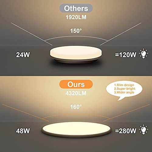 【Luci luminose e morbide proteggono i tuoi occhi】La plafoniera LED contiene 260 perle di lampada LED di alta qualità. La plafoniera a LED offre luci brillanti e morbide, la plafoniera a LED non sfarfalla, la plafoniera a LED non lampeggia, la plafoniera a LED protegge i tuoi occhi da luci aspre e abbaglianti.