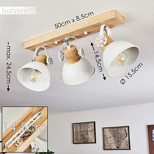 Plafoniera Orny, lampada da soffitto in metallo/legno in bianco/marrone, 3 luci, con faretti regolabili, 3 x attacco E27, faretto dal design retro/vintage, senza lampadina/e