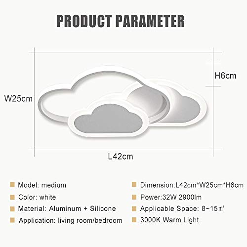 32W LED Plafoniera, Lampada Da Soffitto Nuvola Creativa, 3000K luce calda, Moderna Bianca Plafonieras, Utilizzata in Soggiorno, Camera Da Letto, Corridoio Camera Dei Bambini 42cm*25cm*6cm
