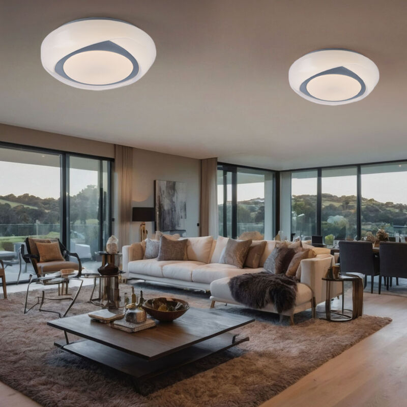 Descrizione Questa lampada è l'illuminazione perfetta per i tuoi spazi abitativi. Il bel design colpisce per tutta la sua lunghezza. Questa lampada è perfetta per essere utilizzata come plafoniera da interni, come ad esempio: Ad esempio corridoio, cucina o vano scale. È inclusa una lampadina LED da 15 watt. Nella consegna sono incluse due luci! Lampada dettagli • Tipo di lampada: plafoniera • Materiale: metallo bianco • Paralume: acrilico bianco, inserto decorativo triangolare in nichel opaco • Diametro x altezza in cm: 35 x 9,5 • Peso: 580 g • Presa: 1x LED • Lampade installate permanentemente • Potenza lampada: 1x 15 watt • Flusso luminoso: 1x 1040 lumen • Colore della luce: bianco caldo • Voltaggio operativo: 48 volt Dettagli lampadine • Base: LED • Flusso luminoso: 1040lm (lumen) • Consumo energetico: 16,5 kWh/1000 ore • Temperatura colore: 3000K (Kelvin) • Consumo energetico nominale: 15 W (watt) • Vita utile nominale: 15000 h (ore) • Cicli di commutazione: 10000x • Frequenza di