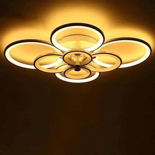Plafoniera Lampadario da soffitto a led con 8 Luci cerchi Telecomando Dimmerabile Design Stile Moderno Lampada per Camera Cucina Salotto Locali Commerciali (8 Cerchi 3000/4000/6500k)