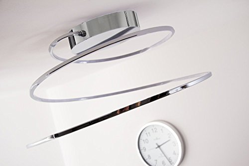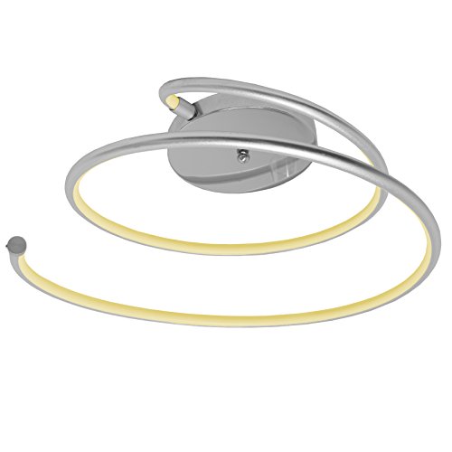 Plafoniera Lampadario Spirale Design, Lampada da soffito per Camera casa Ufficio, con Base e Struttura in Metallo Cromato, Luce LED 22W, (Bianco Caldo)