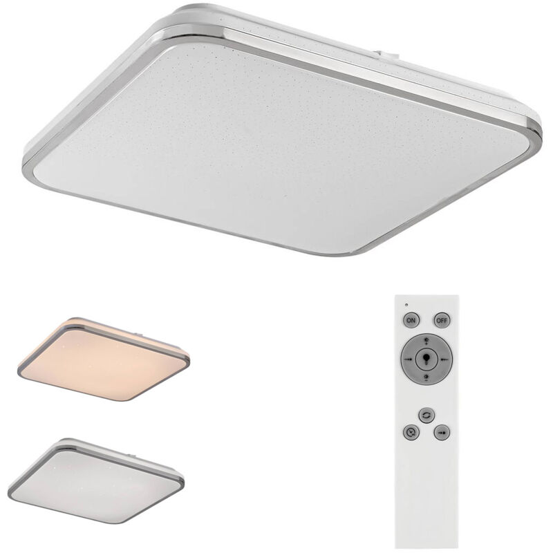 Soffitto Linden Linden Chrome LED bianco 72W L: 7,5 cm B: 45,5 cm H: 7,5 cm Ø45,5 cm Dimmabile con telecomando Dimensioni in mm: Lunghezza: 75, larghezza: 455, altezza: 75, diametro: 455 peso in kg: 1.4 Lampade contengono: Sì Prestazioni massime in Watt: LED 72W Colore della luce in Kelvin: 3000-6500 Colore della luce: Colore Regolabile Flusso di luce in lume: 5800 Classe di efficienza energetica (da da ++ a e): g Tipo di protezione: ip20 Dimmbar: Sì Switch: No Materiale per alloggi: metallo Colore abitativo: Chrom Materiale di vetro/picchi: plastica Colore vetro/ombrello: Weiss Informazioni aggiuntive: con telecomando controllo