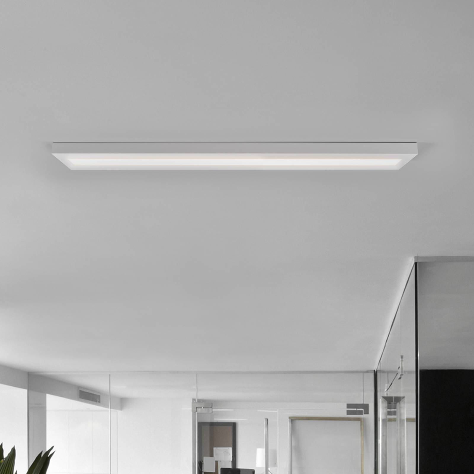 Plafoniera rettangolare LED ultrapiatta in tecnologia Osram DURIS LED Costituisce una valida alternativa di risparmio energetico alle classiche plafoniere T8 (1 o 2 x 58W). Grazie alla modernissima tecnologia OSRAM Duris LED sono garantiti risparmi energetici fino al 50% rispetto alle tradizionali plafoniere T8, a parità di rendimento. Il driver LED è già montato. Il diffusore a microprismi impedisce che si vengano a formare riflessi sui monitor. La plafoniera pertanto è compatibile con posti di lavoro al computer. La componentistica d'alta qualità assicura una lunga durata, fino a 50.000 ore, e riduce al minimo i costi di manutenzione. L'armatura ultrasottile (soli 40 mm di spessore), in lamiera d'acciaio bianca, e la piacevole luce di tonalità calda rendono questa plafoniera ideale in uffici o corridoi dove si richieda un'illuminazione sobria.