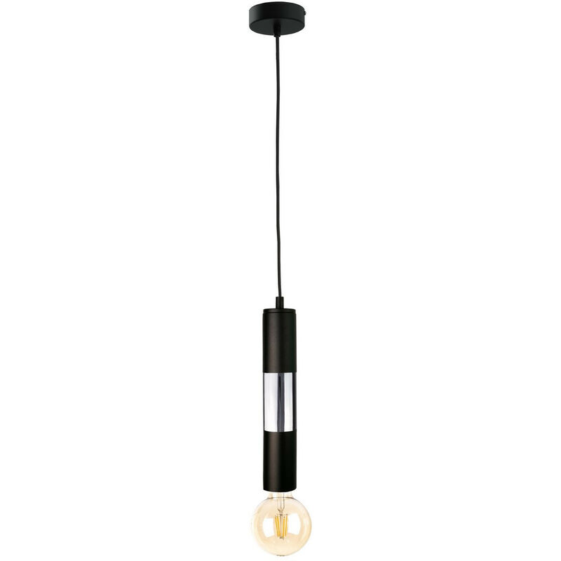 Keter Lighting - 1269 Plafoniera Magnum Slim Sospensione Nera, Cromata, 10 cm, 1x E27 | Finitura: nero, cromato | Altezza: 120 cm | Lunghezza: 10 cm | Larghezza: 10 cm | Tipo di lampada: E27 | N. di lampade: 1 | Lampadina inclusa: no | Dimmerabile: Sì - Sono necessarie lampadine dimmerabili | Potenza (max): 60 W