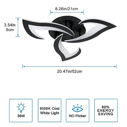 Plafoniera Led Moderna, 36W 4300LM Nero Lampada da Soffitto in Acrilico, 6500K Bianco Freddo Creativa Lampadario Led Soffitto a Forma di Fiore per Camera da Letto, Ristorante, Studio, Soggiorno