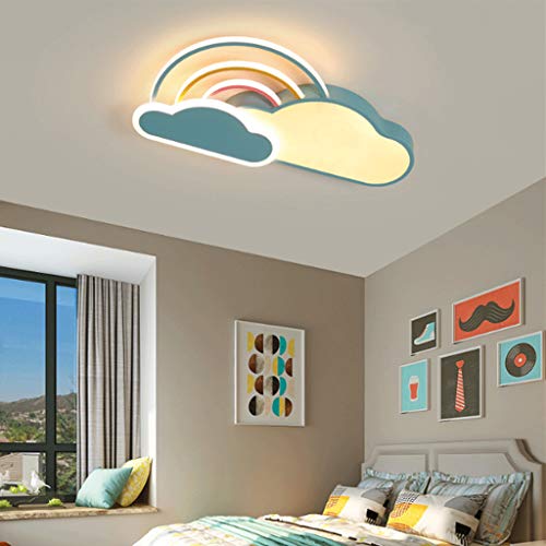 Plafoniera LED Moderna Camera Per Bambini Dimmerabile Con Telecomando Lampada Da Soffitto Cartoon Nuvole Bianche Arcobaleno Ragazzo E Ragazza Illuminazione Paralume Acrilico Cameretta Luce,Blu,65cm