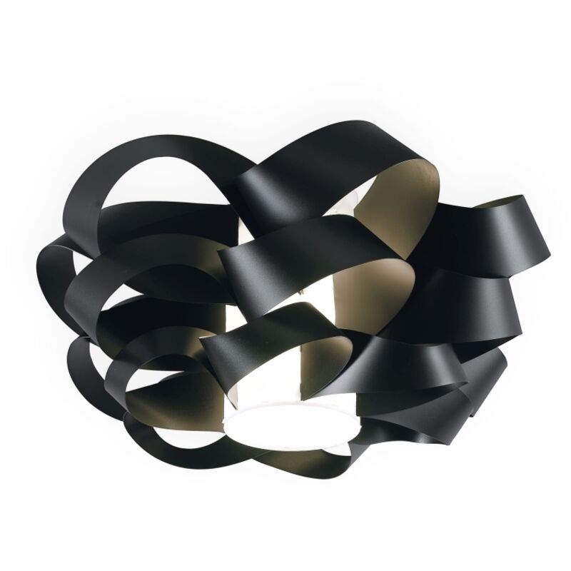Collezione Cloud LINEE MORBIDE E AVVOLGENTI COME UNA SOFFICE NUVOLA Lampada da soffitto moderna a 1 luce realizzata in polilux nero di diametro 40 cm. Il diffusore è realizzato da fogli in polilux, tutti intrecciati fra loro, che formano una sfera rotonda che emette una luce soffusa e delicata. Ben si adatta ad illuminare con grazia ed eleganza salotti, cucine, ingressi, camere da letto, uffici, dallo stile moderno e contemporaneo. Il Polilux, oltre a creare nell'ambiente un senso di leggerezza, è atossico, versatile, non ingiallisce nel tempo e di facile pulizia domestica. Disponibile in diverse misure e in varie finiture. Soffice come una nuvola baciata dai raggi del sole, dalle linee morbide e avvolgenti, le lampade della collezione Cloud creano eleganti e ricercate forme di luce di grande effetto scenico.