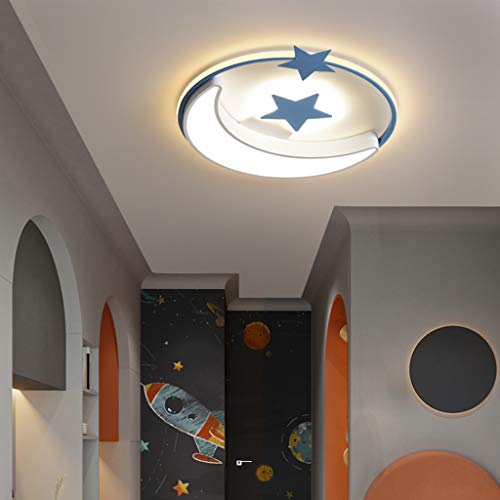 Plafoniera LED Moderna Creativa Stella E Luna Lampada Da Soffitto Rotonda Dimmerabile Telecomando Illuminazione Camera Ragazzi E Ragazze Bambini Cameretta Soggiorno Decorazione Lampadario,Blu,60cm
