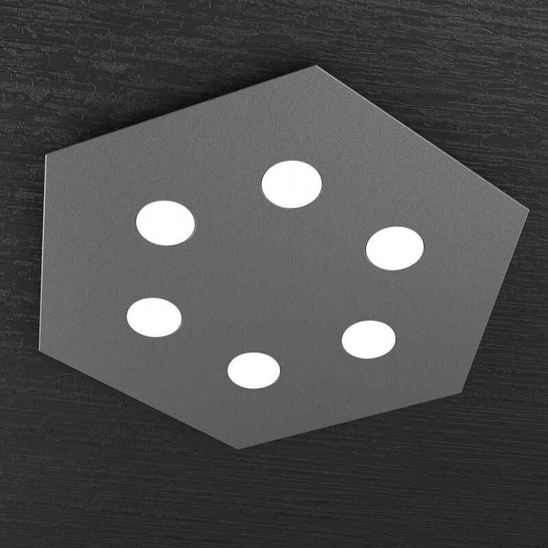 Collezione Hexagon IL FASCINO GEOMETRICO DELL'ILLUMINAZIONE LED Plafoniera 6 luci esagonale formata da lastre quadrate di metallo verniciato in finitura grigio antracite.. Un punto di forza del prodotto consiste nel non utilizzare dei led integrati ma una lampadina Gx53 che, una volta montata, arriva a filo della lastra metallica e può essere facilmente sostituita dall'esterno. Disponibile anche la versione sospensione a 6 luci e sospensine 6 luci più 1 luce,dalle stesse dimensioni della plafoniera ed è disponibile in tutte le finiture esistenti.Questo articolo è disponibile in diverse finiture e/o dimensioni. E' possibile indicarlo nell'apposito campo NOTE presente in conclusione di ordine oppure contattarci dopo aver effettuatol'ordine.