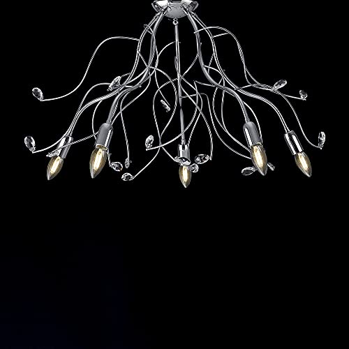 Plafoniera Moderna 5 Luci Ferro Cromo e Strass Serie Oxia