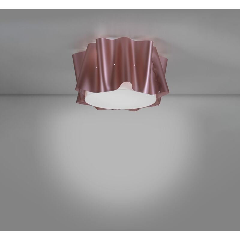 Collezione Folio DESIGN EFFETTO TESSUTO Lampada da soffitto moderna a 3 luci realizzata in polilux rosa metallico. Il materiale in cui è realizzata garantisce trasparenza e diffusione della luce, consentendo così di illuminare e arredare gli ambienti, scaldandoli e rendendoli accoglienti con particolare attenzione e cura ad ogni singolo dettaglio. Disponibile in diverse misure e finiture, la linea è composta anche da sospensioni, appliques, lampade da tavola e da terra. La lampada, disegnata dal design studio di MM Company, è formata da un'anima cilindrica in Polilux, alla quale è stata abbottonata una seconda superficie curva, che ricrea l'effetto morbido e leggero di un tessuto.