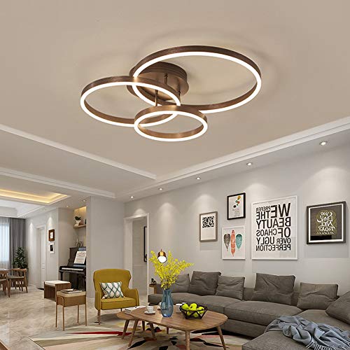 Plafoniera Led Moderna Lampada da Soffitto 3 Anello Luminoso Plafoniera a LED con Telecomando Dimmerabile, Luce Acrilica Lampade di Illuminazione a Soffitto per Soggiorno/Camera da Letto,Marrone