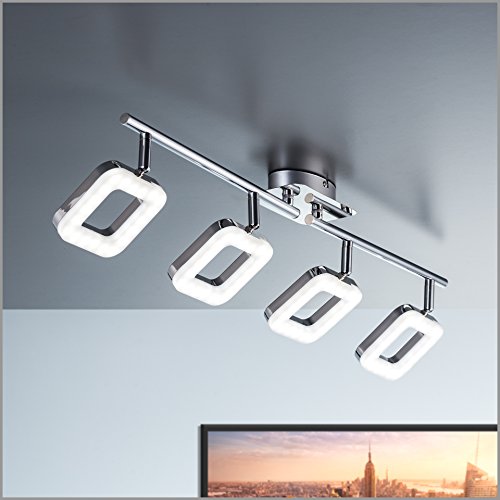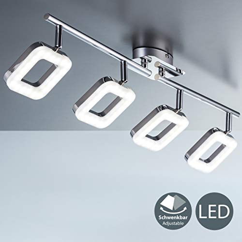 Plafoniera LED moderna, lampada da soffitto, 4 luci orientabili a forma quadrata, LED integrati 4 x 4 W, luce calda 3000K, corpo metallo cromato, lampadario per soggiorno o camera da letto, 230V IP20