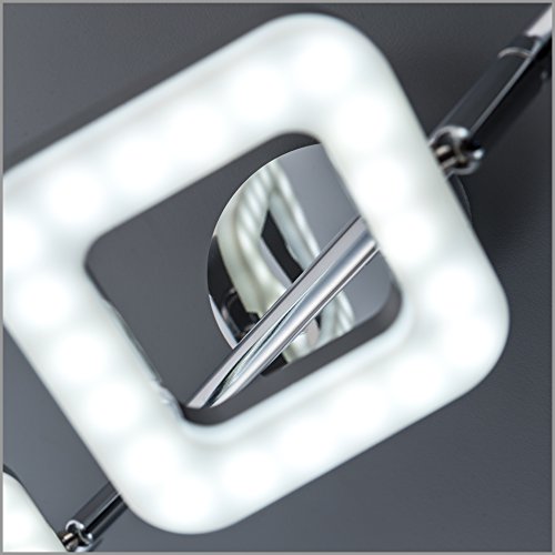Plafoniera LED moderna, lampada da soffitto, 6 luci orientabili a forma quadrata, LED integrati 6 x 4 W, luce calda 3000K, corpo metallo cromato, lampadario per soggiorno o camera da letto, 230V IP20