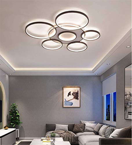 Plafoniera moderna LED Lampada soggiorno grande Lampada da soffitto dimmerabile con telecomando Lampada a sospensione Paralume metallo acrilico pranzo Lampada ufficio Lampada cucina Soffitto,7 rings