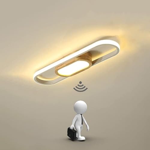 KZT Plafoniera Moderna in Legno Con Sensore di Movimento Lampada da soffitto LED con sensor a Microonde 3000K Bianca Calda Lampadario per Corridoio Soggiorno Balcone Scale Seminterrato Garage (50cm)