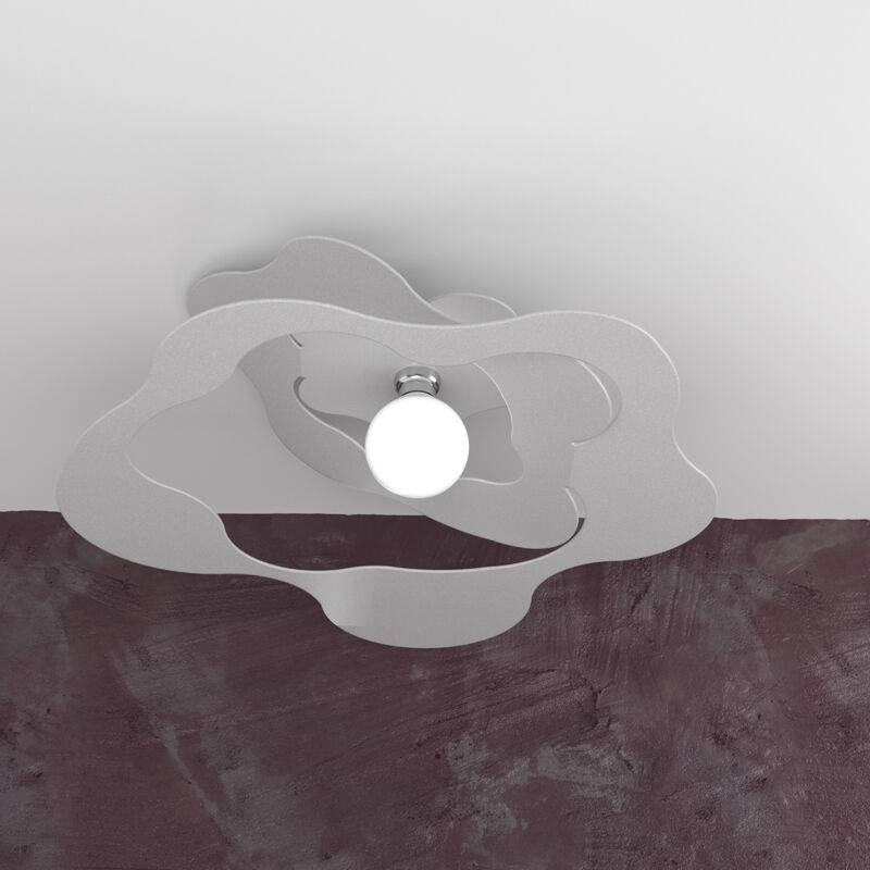 Collezione Ripples UN FLUSSO DI LUCE INCRESPATO Plafoniera composta da una struttura cromata che sostiene un diffusore metallico realizzato con tecnologia laser.. Il diffusore finitura grigio è caratterizzato da una sagoma ondulata non uniforme.Questo articolo è disponibile in diverse finiture e/o dimensioni. E' possibile indicarlo nell'apposito campo NOTE presente in conclusione di ordine oppure contattarci dopo aver effettuatol'ordine.