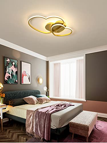 Plafoniera a LED | moderna e semplice | acrilico | lampada per cameretta per bambini a forma di cuore 48W, lampadario intelligente per camera da letto con telecomando a regolazione continua (oro)