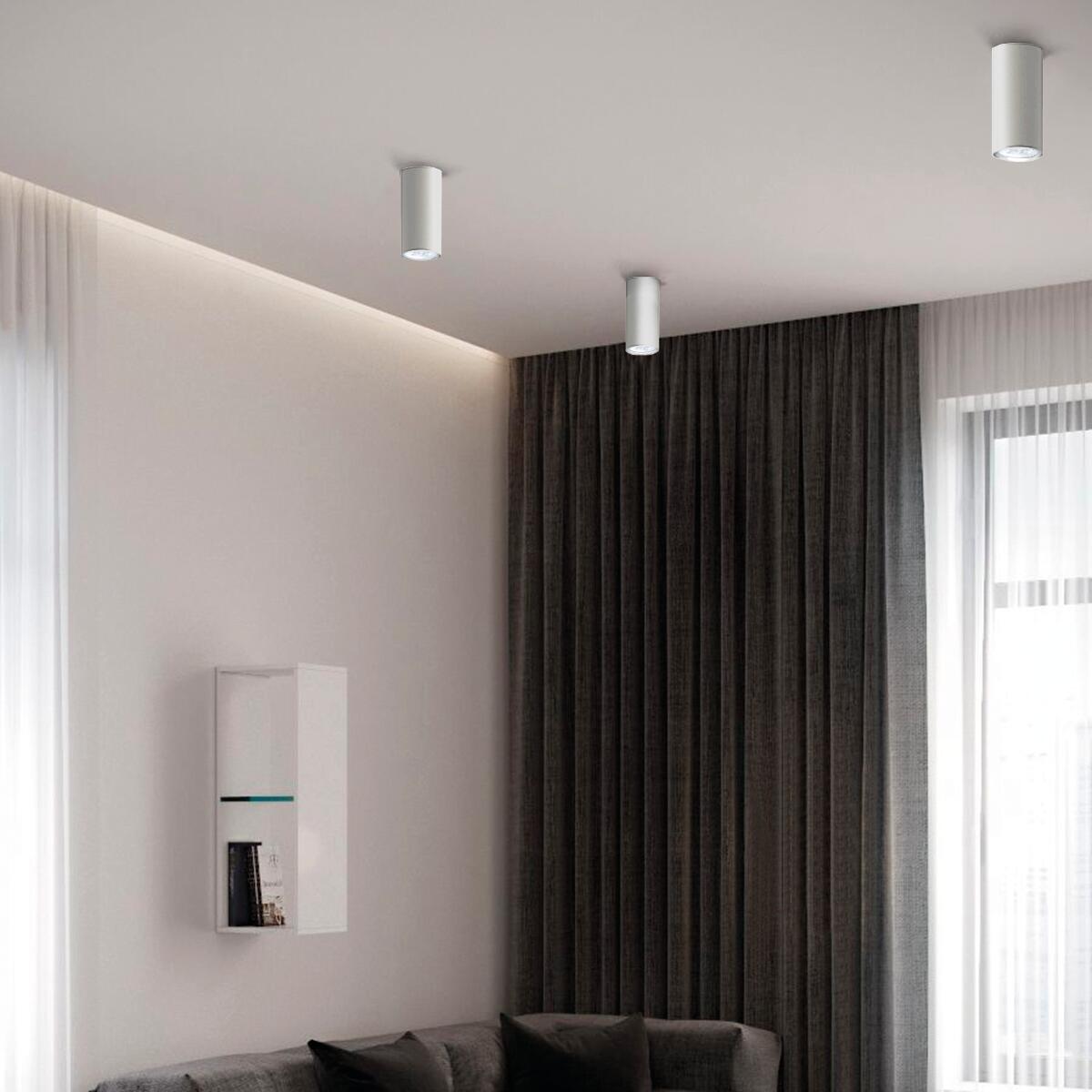 Plafoniera in metallo caratterizzata da un design moderno che diffonde gradevolmente la luce. Verniciata in colore bianco. Particolarmente adatta ad ambientazioni in stile moderno. Disponibile nella versione con diametro di 6 centimetri ed altezza 10 centimetri (1xGU10).. Ideale come luce diffusa per una stanza di dimensione 10-15 mq. Consigliato per zona giorno e zona notte. Prodotto 100% Made in Italy. Disponibilità ricambi garantita per 7 anni. Riparabilità garantita al 100% in ottemperanza ai principi di economia circolare