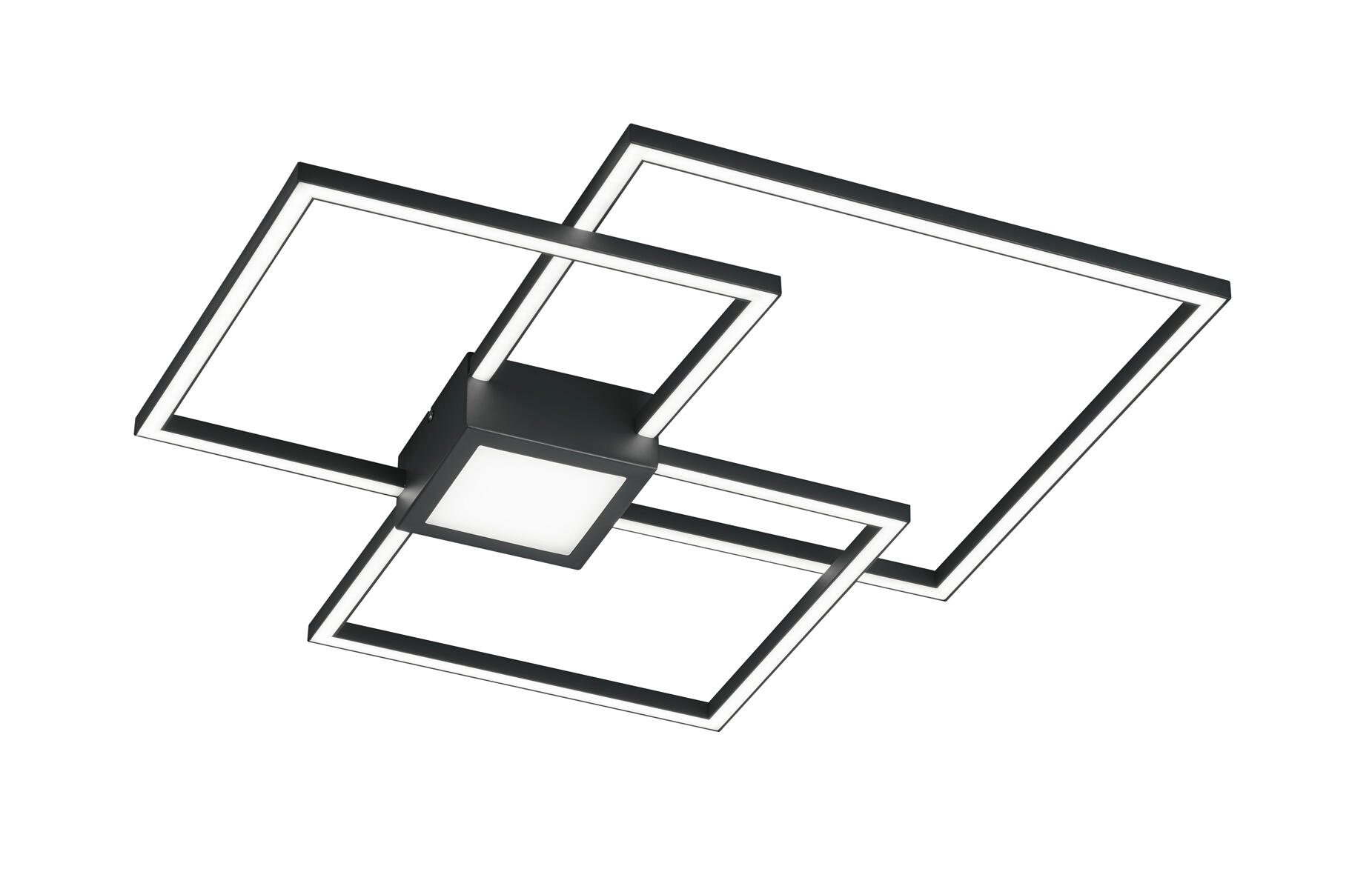 Plafoniera LED in metallo antracite con tripla luce quadrata e luce centrale, dimmerabile con interruttore classico a parete. Montaggio parete/soffitto. Dimmerabile con interuttore classico a parete