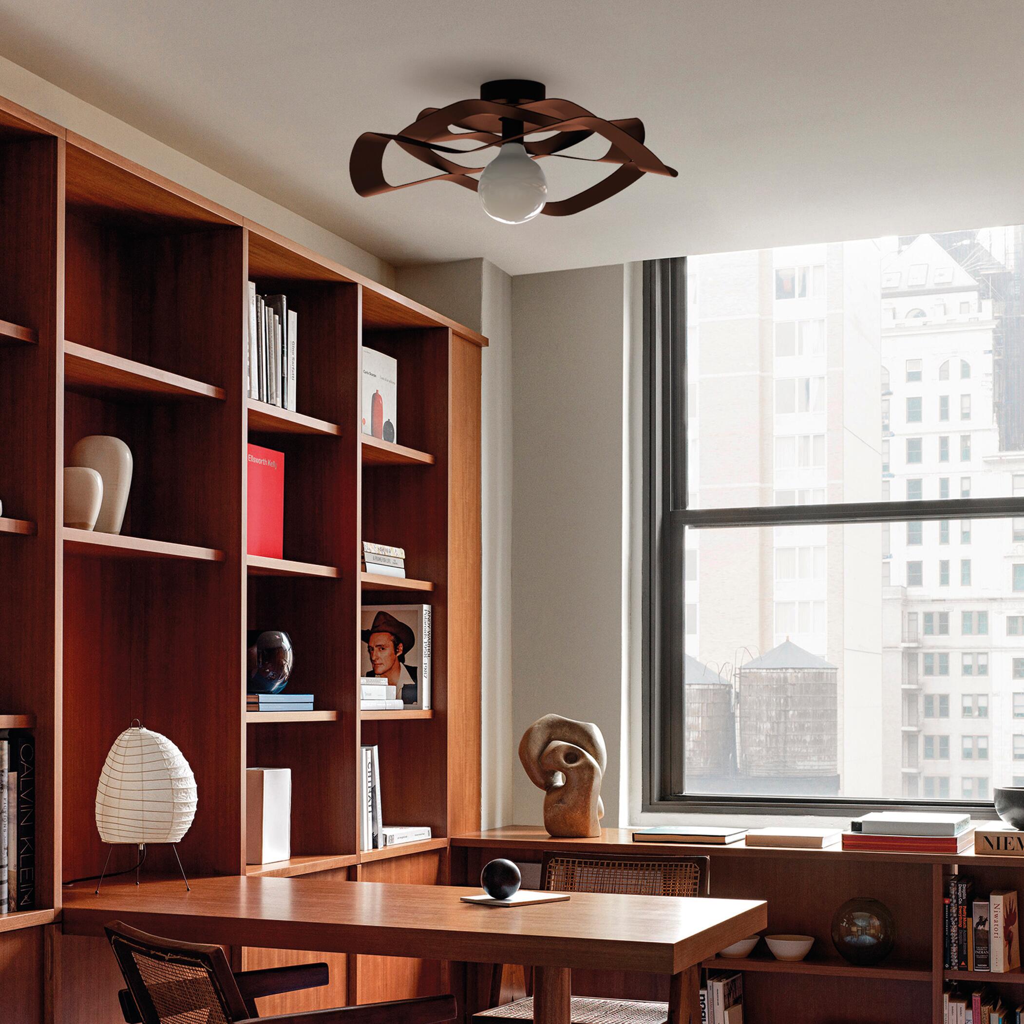 Plafoniera in stile moderno caratterizzata dall'ampio diffusore in metallo che diffonde gradevolmente la luce. Verniciata in colore corten. Adatta a qualsiasi ambientazione moderna/classica. Disponibile nelle versioni con diametro 40 centimetri (1xE27), 60 centimetri (1x E27).. Ideale come luce diffusa per una stanza di dimensione 10-20 mq. Consigliato per zona giorno e zona notte. Prodotto 100% Made in Italy. Disponibilità ricambi garantita per 7 anni. Riparabilità garantita al 100% in ottemperanza ai principi di economia circolare
