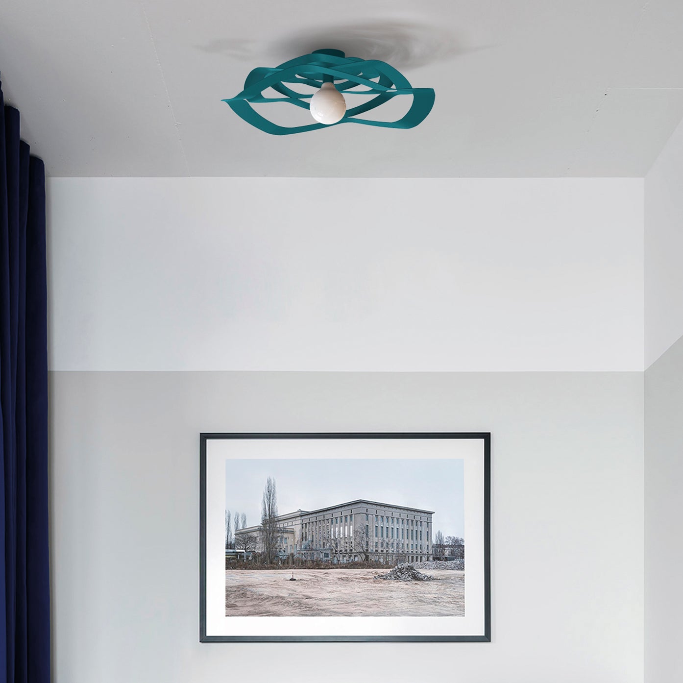Plafoniera in stile moderno caratterizzata dall'ampio diffusore in metallo che diffonde gradevolmente la luce. Verniciata in colore blu. Adatta a qualsiasi ambientazione moderna/classica. Disponibile nelle versioni con diametro 40 centimetri (1xE27), 60 centimetri (1x E27).. Ideale come luce diffusa per una stanza di dimensione 10-20 mq. Consigliato per zona giorno e zona notte. Prodotto 100% Made in Italy. Disponibilità ricambi garantita per 7 anni. Riparabilità garantita al 100% in ottemperanza ai principi di economia circolare