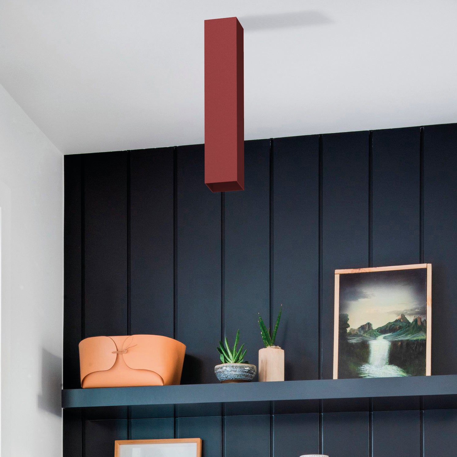 Plafoniera in metallo caratterizzata da un design moderno che diffonde gradevolmente la luce. Verniciata in colore rosso. Particolarmente adatta ad ambientazioni in stile moderno. Disponibile nella versione di altezza 10 centimetri e 30 centimetri (1x GU10).. Ideale come luce diffusa per una stanza di dimensione 10-15 mq. Consigliato per zona giorno e zona notte. Prodotto 100% Made in Italy. Disponibilità ricambi garantita per 7 anni. Riparabilità garantita al 100% in ottemperanza ai principi di economia circolare