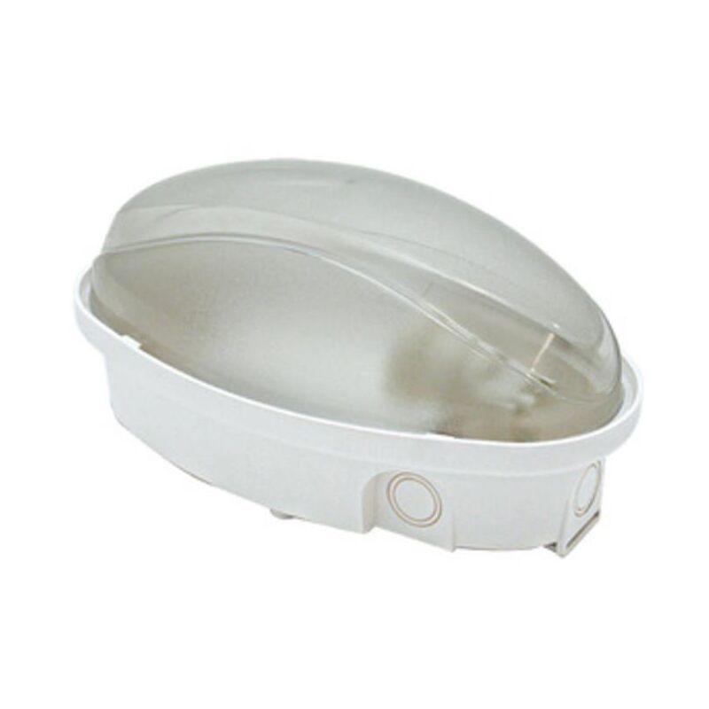 Art. 62.720 corpo in materiale termoplastico e calotta in policarbonato opalino. A norme EN 60598-1 e EN 60598-2-1. Portalampada E27 (attacco grande) per lampade ad incandescenza (max 60W) o a basso consumo (max 11W). Grado di protezione IP65. Base 215x125xh110 mm. Colore bianco.