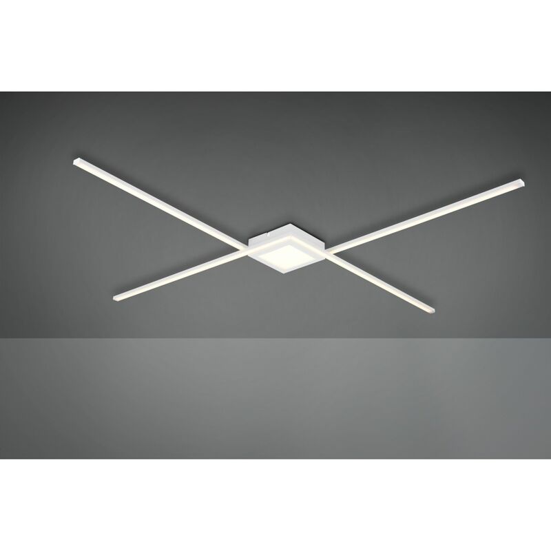 Plafoniera Oxford Bacchette X Led 4000k Bianco Opaco La lampada Oxford di Trio Lighting presenta una struttura interamente in metallo bianco opaco con base quadrata e 4 bacchette che si intersecano tra loro creando un gioco geometrico particolare e suggestivo a formare una 'X'. Dotata di modulo integrato LED SMD RGB da 27 watt, resa luminosa 3600 lumen, temperatura colore 4000k (luce naturale). La luminosità di questa lampada può essere regolata a 3 diversi livelli tramite standard interruttore per luci. Non compatibile con dimmer esterno. Di semplice installazione sia a soffitto che a parete, questa lampada moderna è ideale per arredare e illuminare con stile e originalità diversi ambienti della vostra casa, come ad esempio il soggiorno living, la cucina o l'open space, ma anche contesti lavorativi, come studi o uffici. Caratteristiche: Colore: Bianco Opaco Disponibile anche di colore antracite o nichel opaco.