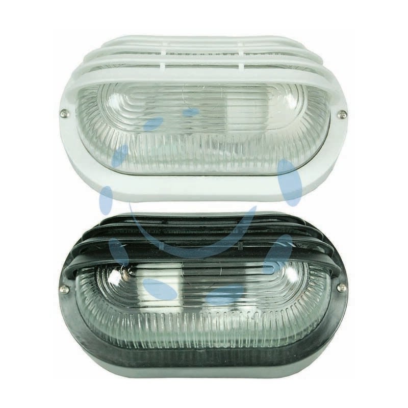 PLAFONIERA A PALPEBRA TRAFORATA NERO max 40w IP44 - mm.200x115x100h. PLAFONIERA A PALPEBRA TRAFORATA NERO in plastica con vetro 200x115x100h. Max lampade 40W IP44