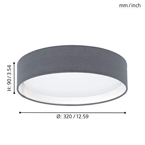 EGLO Plafoniera Led Pasteri, plafoniera, in tessuto, uno punto luce, acciaio, tessuto, plastica, grigio, bianco, diametro 32 cm