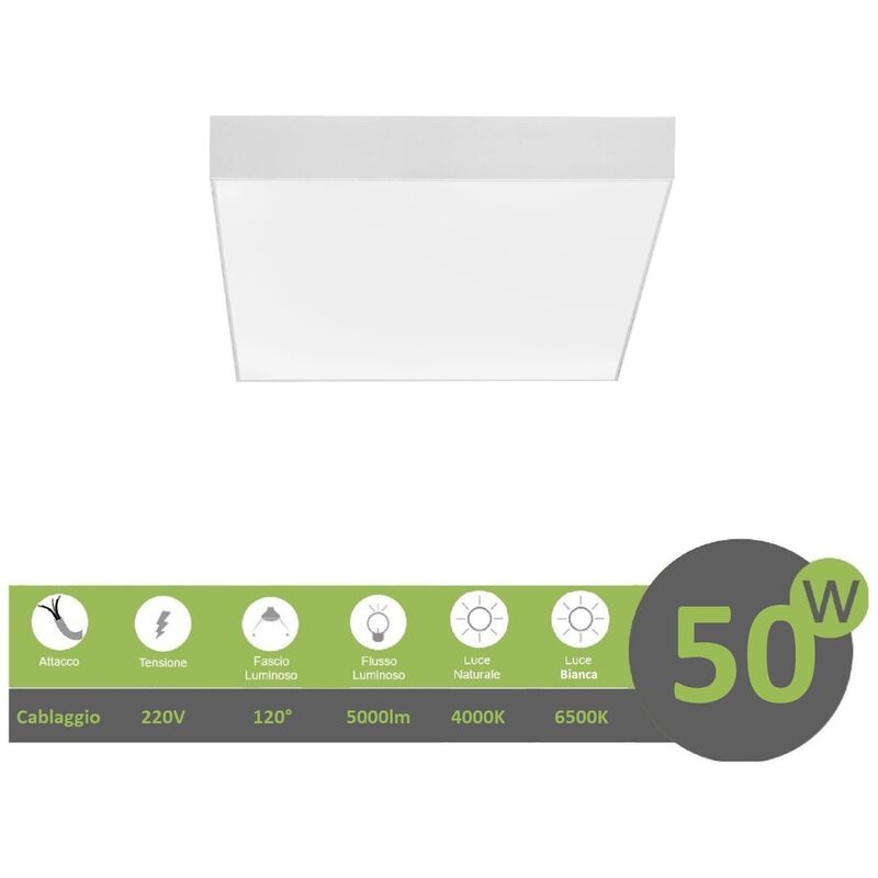 Plafoniera led dal design moderno e minimal. Struttura realizzato in alluminio con copertura totale ( senza visibilità di ghiera) in PVC opaca. Progettato in modo che il calore dei led circoli verso l'esterno, aumentandone la durata nel tempo. Installazione facile e veloce grazie al sistema di fissaggio a rotazione. Tecnologia SMD con ben 424 led che garantiscono un ottima resa luminosa. Caratteristiche tecniche Potenza 50W Flusso luminoso 5000lm Colore corpo Bianco Voltaggio AC220-240V Frequenza 50/60Hz Dimmerabile No Uso Interno Luce disponibile 6500k bianca - 4000k naturale Materiale Alluminio + PVC Dimensioni Larghezza 300 mm Altezza 300 mm Spessore 42 mm Tipologia: A Soffitto