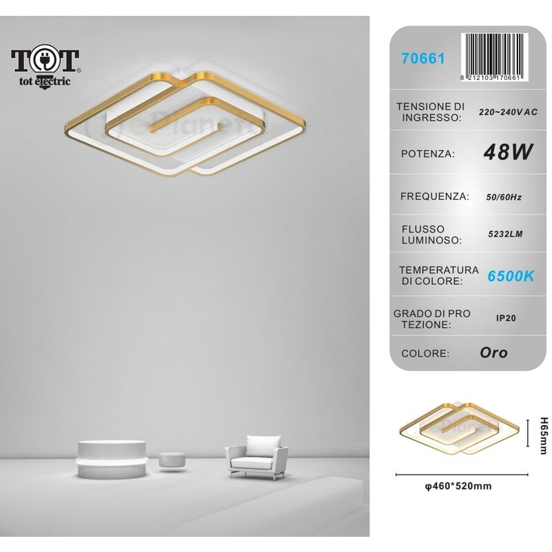 Plafoniera con illuminazione led dal design moderno. Struttura in alluminio dorato con rifinitura satinata dalla linea sinuosa e dinamica. Lampadario creativo ed elegante ideale per camera da letto cucina, soggiorno e spazi dedicati alla ristorazione e passatempo. Caratteristiche tecniche Potenza 48W Flusso luminoso 5232lm Colore corpo Oro Voltaggio AC220-240V Frequenza 50/60Hz Luce disponibile Bianca - Naturale - Calda Materiale Alluminio+PVC Dimensioni Larghezza 520 mm Larghezza base 460 mm Profondità 65 mm Tipologia: A Soffitto