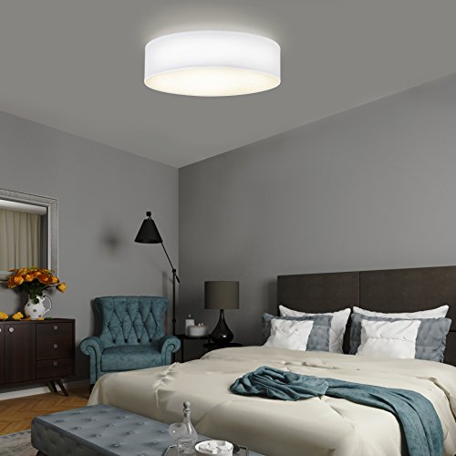 Plafoniera rotonda, Plafoniera soffitto in tessuto bianco, Diametro 40cm, Lampadario camera da letto, Lampadari moderni per soggiorno, ufficio, attacco per 3 lampadine E14, IP20