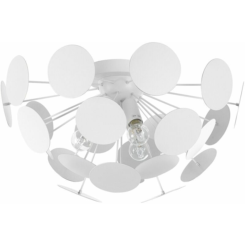 Lampada da soffitto di design. Apri le porte allo stile industriale, in soggiorno, in camera da letto o all'entrata ingresso, con questa originale plafoniera. Realizzata in metallo di altissima qualità, attraverso il suo paralume semisferico, diffonde una luce calda e accogliente. Dettagli: Tipo di prodotto: Plafoniera Stile: Moderno Colore principale: Bianco Tipo di materiale: Metallo Materiale principale: Metallo Materiale del paralume: Metallo Potenza elettrica: Max. 40W Finitura: Opaca Codice IP di protezione: IP 20 Lampadine richieste: 3 Voltaggio: 220-240 V (50 Hz) Dimensioni: Profondità: 52 cm Larghezza: 52 cm Altezza: 28 cm Peso: 3 kg L'offerta include: 1 x Lampadario, Non include: Lampadine Caratteristiche chiave: La struttura aperta crea originali giochi di luce, Ideale come luce ambiente, Ideale sia per la camera da letto che per il soggiorno, Look accattivante, Risparmio energetico ottimizzato Guida al montaggio: Richiede installazione e montaggio. 20-40 min. Informazioni