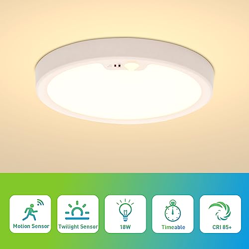 18W Plafoniera con Sensore di Movimento, Ø22 Lampada a Soffitto Ultra Sottile Rotonda con 1620LM, Plafoniera con Rilevatore di Movimento 3000K-6000K per Corridoio, Portico, Garage, Ingresso, Scala