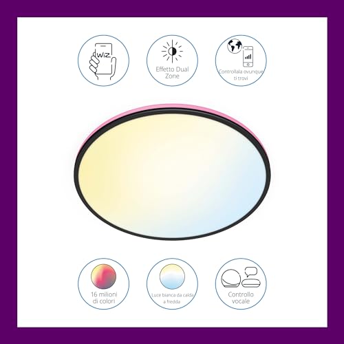 WiZ Plafoniera Smart Rune WiFi, Dual Zone, Dimmerabile, Luce Centrale Bianca Dinamica, Luce Laterale Colorata, 22W, Nero, Tecnologia SpaceSense, Controllo Vocale (Alexa, Apple HomeKit, Google Home)