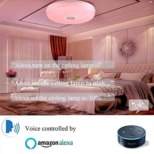 Plafoniera da soffitto con Alexa Smart WiFi, 24 W, con telecomando, dimmerabile, con altoparlante Bluetooth, compatibile con Amazon Alexa