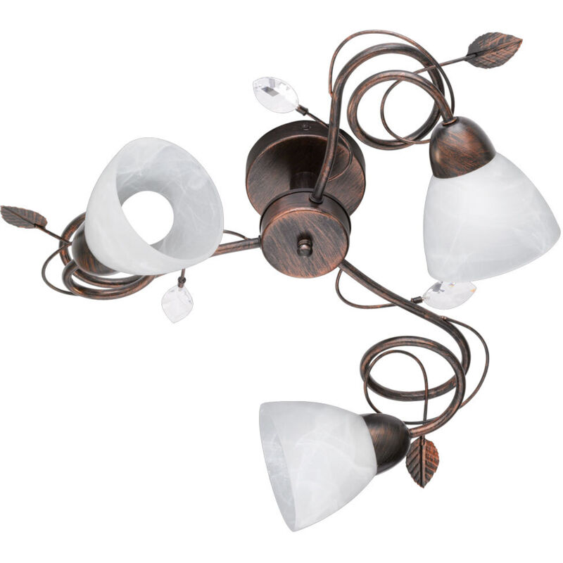 Tipologia plafoniera da soffitto per interno Attacco piccolo E14(potenza max 3x40w) lampadine non incluse Tensione 230v Grado di protezione IP20 Colore ruggine antico Materiale metallo Dimensioni 26x61cm