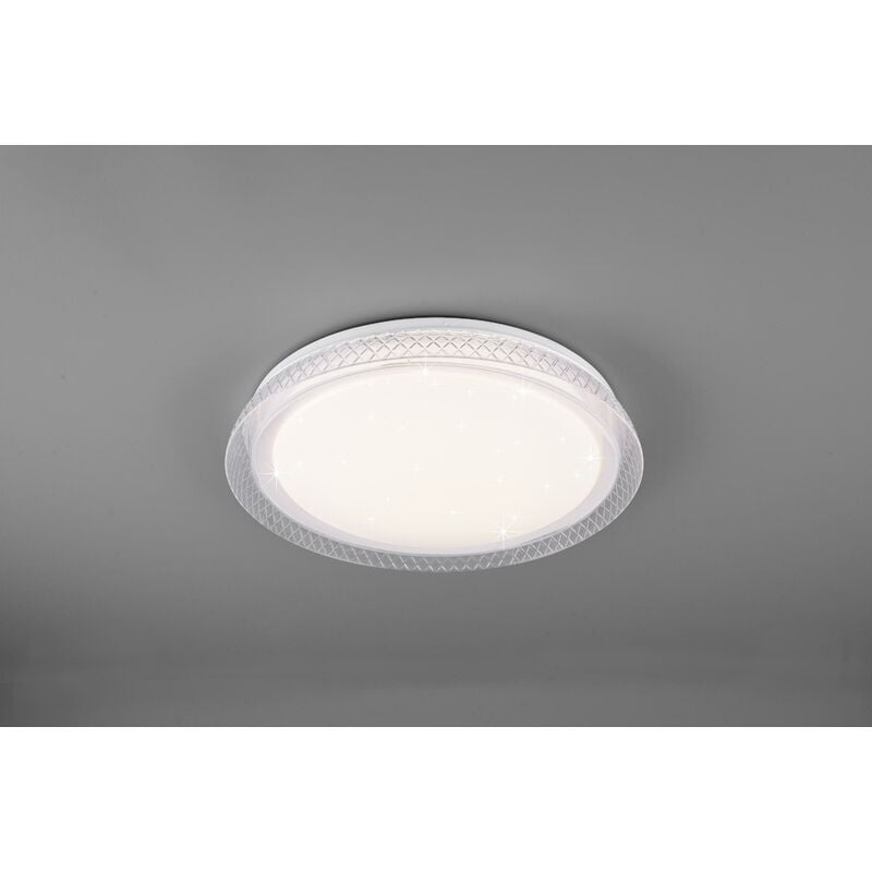PREZZO VALIDO SOLO PER LE QUANTITA' DISPONIBILI. ALCUNI PRODOTTI SONO ESPOSTI NEL NOSTRO SHOWROOM. HERACLES PLAFONIERA LED DIFFUSORE BIANCO EFFETTO STELLE CON BORDO TRASPARENTE RIGATO E TELECOMANDO MULTIFUNZIONE D.38 Gruppo di Prodotto: Plafoniera Tipologia: Interno Tecnologia: LED integrato Stile: Moderno Materiale: Plastica Colore finitura: Bianco Fonte di luce principale: incl. Fonte di luce principale attacco: Led Integrato Fonte di luce principale numero di attacchi: 1 Fonte di luce principale Watt: 18 Fonte di luce principale Lumen: 2000 Fonte di luce principale Kelvin: 2700 6500K Fonte di luce principale Volt: 230 Fonte di luce principale durata nominale (h): 30000 Altezza (cm): 5,5 Diametro (cm): 38 Classificazione IP: IP20 Classe di protezione: 1 Comando a distanza: SI Dimmer integrato: SI Colore della luce infinitamente variabile: SI Montaggio a soffitto: SI Non adatto per dimmer esterno: SI Effetto stelle: SI