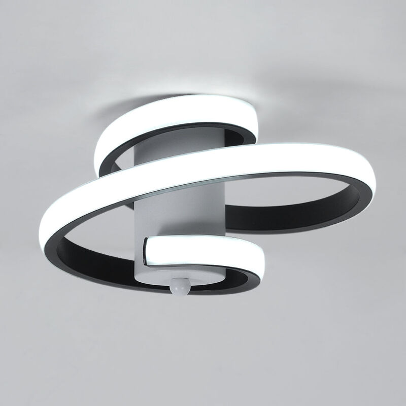 Plafoniera a LED dal Design Spirale Unico: design unico a spirale del nastro, il braccio della lampada a spirale è installato sulla parte superiore del cerchio, illuminerà il tuo spazio con stile e si distingueranno tra le tue attuali decorazioni. Dimensioni plafoniera LED: la dimensione della plafoniera nera è L23 * W21 * H10CM, materiale: alluminio e acrilico. Potenza: 24W, Sorgente luminosa a LED, alta luminosità e lunga durata. Gamma di illuminazione: 5㎡ -10㎡. Scheda LED integrata: la plafoniera viene fornita con una scheda LED integrata da 24 Watt e 1800 lumen. Goditi una potente luce bianca freddo di 6000 Kelvin per un'atmosfera luminosa e accogliente nei tuoi spazi abitativi. Le schede LED sono fisse e non direzionali. Alta Qualità: Corpo lampada in metallo (ferro alluminio), trattamento di verniciatura superficiale. Il materiale del paralume è acrilico, trasmissione della luce alta, protezione ambientale, nessuna ruggine, lunga durata, colore uniforme. Occasioni: Lampada da