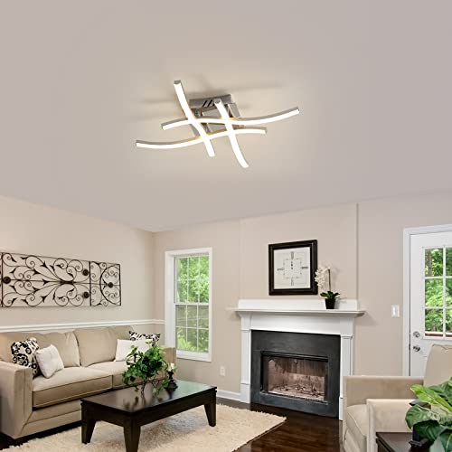Plafoniera LED Soffitto, Lampadario Camera da letto Design Curvo, Plafoniera led Soffitto Moderna, 4 barre luminose a LED integrate, 24W 2400LM, Luce Neutra 4000K per Camera da letto Cucina Soggiorno