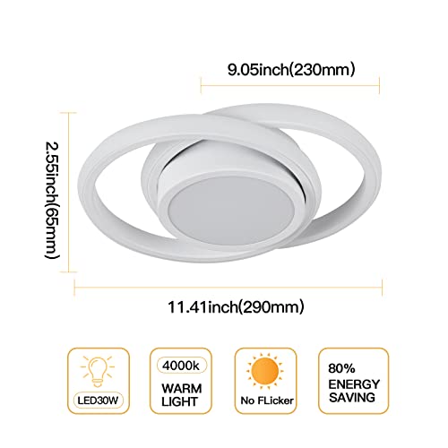 【Temperatura di colore confortevole】Plafoniera LED da 30W 2700LM(la sorgente luminosa a led non è sostitutiva),Dimensioni:L29*W23*H6.5cm(11.41*9.06*2.55inch),4500K Bianco Neutro,Design ad arco a doppio cerchio,bello e alla moda。