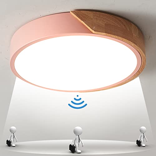 Plafoniera LED soffitto con Sensore di Movimento 24W Lampada da Soffitto Moderna Rond Bianco Freddo 6500K Luce Motion Sensor per Hall Scale Portico Garage Balcone Plafoniere in Legno Ø30cm (Rosa)