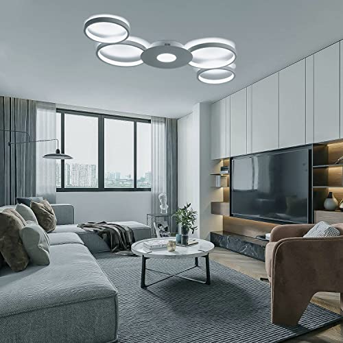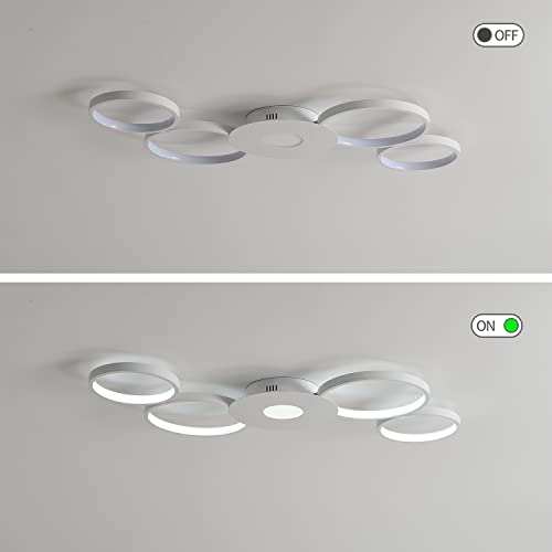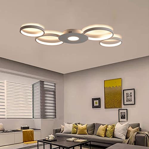 Plafoniera LED soggiorno plafoniera dimmerabile con telecomando, lampada soggiorno design bianco 4 anelli, Lampada da soffitto moderna tonda 52W Lampadario per camera da letto cucina sala pranzo L88cm