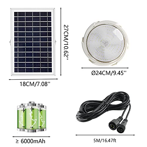 【Lampada solare da soffitto】Pannello solare ad energia solare, 7W/6V, ricarica più rapida, batteria al litio di grande capacità da 6000 mAh può alimentare la luce solare a LED per un massimo di 6-12 ore, la plafoniera ha un diametro di 9,5 pollici, 125 perline di lampada 2835 LED, fornendo 1600 LM, che può illuminare uno spazio di 20 mq.